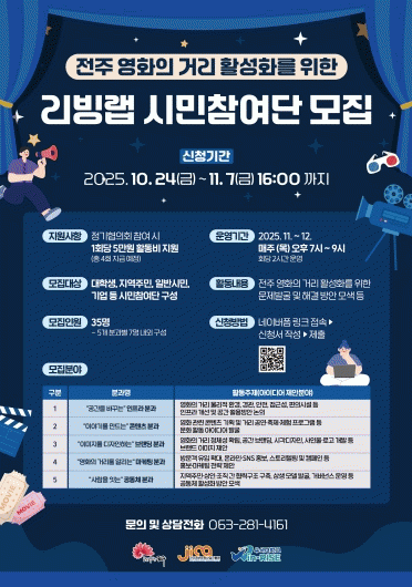 [HKSÇàÁ¤¹æ¼Û] ÀüÁÖÁ¤º¸¹®È»ê¾÷ÁøÈï¿ø(¿øÀå ÇãÀü)°ú ¿ì¼®´ëÇб³(ÃÑÀå ¹Ú³ëÁØ)´Â ÀüºÏ RISE 1Â÷ °ø¸ð»ç¾÷ÀÇ ÀÏȯÀ¸·Î ¡®ÀüÁÖ ¿µÈÀÇ °Å¸® Ȱ¼ºÈ¸¦ À§ÇÑ ¸®ºù·¦¡¯ÀÇ ½Ã¹ÎÂü¿©´ÜÀ» ¸ðÁýÇÑ´Ù°í ¹àÇû´Ù. À̹ø ¸®ºù·¦ ½Ã¹ÎÂü¿©´ÜÀº Áö¿ª¹ÎÀÌ¡¦