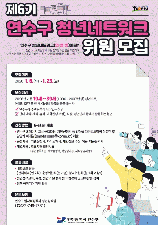 [¼öµµ±Ç] ¿¬¼ö±¸, ¡®Á¦6ȸ û³â³×Æ®¿öÅ© À§¿ø¡¯ ¸ðÁý |2026. 01.15