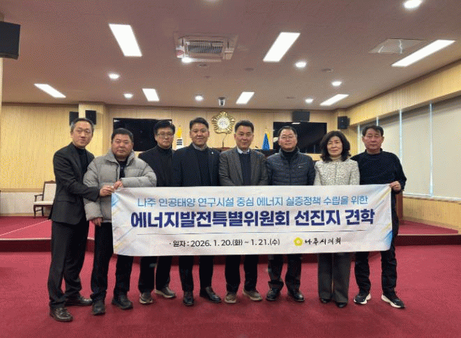 [È£³²±Ç] ³ªÁÖ½ÃÀÇȸ ¿¡³ÊÁö¹ßÀüƯº°À§¿øÈ¸, ÀΰøÅÂ¾ç ¿¬±¸½Ã¼³ ½ÇÁõÁ¤Ã¥ ¼ö¸³À» À§ÇÑ ¼±ÁøÁö °ßÇÐ ½Ç½Ã |2026. 01.23