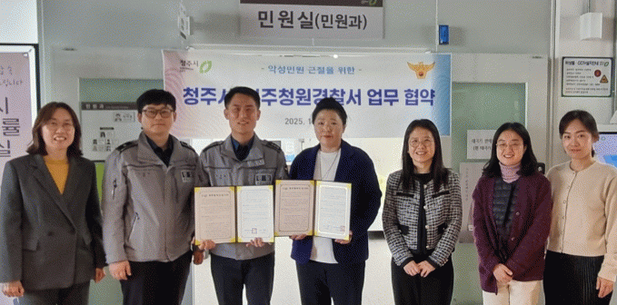 [HKSÇàÁ¤¹æ¼Û]ûÁֽô ¾Ç¼º ¹Î¿øÀ» ±ÙÀýÇÏ°í °øÁ÷ÀÚ¿Í ½Ã¹Î ¸ðµÎ°¡ ¾ÈÀüÇϰí Á¸Áß¹Þ´Â ¹Î¿ø ȯ°æÀ» Á¶¼ºÇϱâ À§ÇØ 3ÀÏ Ã»ÁÖû¿ø°æÂû¼¿Í ¾÷¹«Çù¾àÀ» ü°áÇß´Ù. ÀÓ½Ãû»ç ¹Î¿ø½Ç¿¡¼ ÁøÇàµÈ Çù¾à½Ä¿¡´Â À̹̿µ ½Ã ¹Î¿ø°úÀå°ú ½ÅÀçÈ£ û¡¦