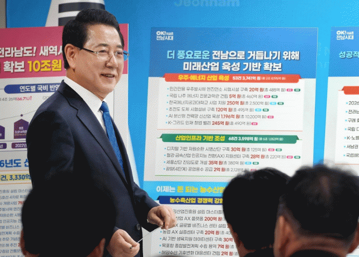 [HKSÇàÁ¤¹æ¼Û]Àü¶ó³²µµ´Â Áö³ 2ÀÏ ±¹È¸¿¡¼ È®Á¤µÈ 2026³â Á¤ºÎ¿¹»ê¿¡ ¿ª´ë ÃÖ´ëÀÎ ±¹ºñ 10Á¶ 42¾ï ¿øÀ» È®º¸ÇØ »ç»ó ù ±¹ºñ 10Á¶ ¿ø ½Ã´ë¸¦ ¿¾î, ¹Ì·¡ Àü³² Ȳ±Ý½Ã´ëÀÇ µçµçÇÑ Åä´ë¸¦ ¸¶·ÃÇß´Ù°í ¹àÇû´Ù. È®º¸ÇÑ ±¹°í¿¹»êÀº 2025³â(¡¦