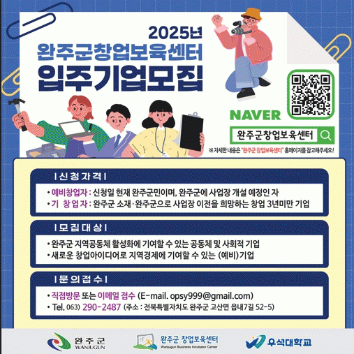 [È£³²±Ç] ¿ÏÁÖ±º, â¾÷º¸À°¼¾ÅÍ ÀÔÁÖ±â¾÷ ¸ðÁý ¡®ÃÖ´ë 3³â Áö¿ø¡¯ |2025. 10.16