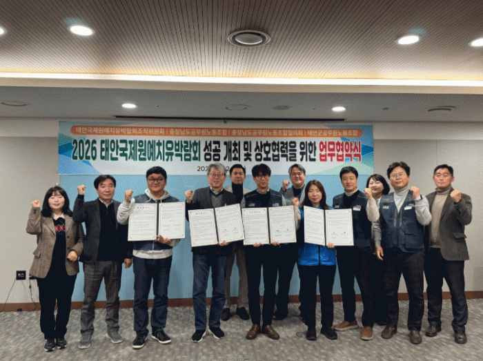 [HKSÇàÁ¤¹æ¼Û] žȱ¹Á¦¿ø¿¹Ä¡À¯¹Ú¶÷ȸ Á¶Á÷À§¿øÈ¸´Â 12¿ù 24ÀÏ Ãæ³²µµÃ»¿¡¼ ÃæÃ»³²µµ°ø¹«¿ø³ëµ¿Á¶ÇÕ, ÃæÃ»³²µµ°ø¹«¿ø³ëµ¿Á¶ÇÕÇùÀÇȸ, žȱº°ø¹«¿ø³ëµ¿Á¶ÇÕ°ú ¹Ú¶÷ȸ ¼º°ø°³ÃÖ¸¦ À§ÇÑ ¾÷¹«Çù¾àÀ» ü°áÇß´Ù. Çù¾à½Ä¿¡´Â Á¶Á÷À§ »ç¡¦