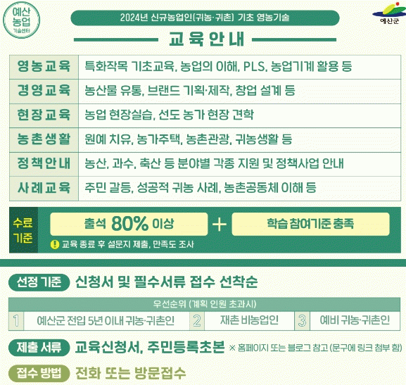 [ÃæÃ»±Ç] ¿¹»ê±º, ½Å±Ô³ó¾÷ÀÎ ±âÃÊ ¿µ³ó±â¼ú ±³À°»ý ¸ðÁý |2024. 02.16
