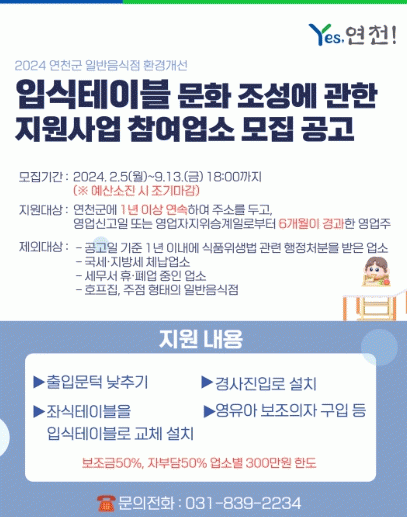 [¼öµµ±Ç] ¿¬Ãµ±º, À½½ÄÁ¡ ȯ°æ°³¼± ÀÔ½ÄÅ×ÀÌºí ¹®ÈÁ¶¼º »ç¾÷ ¾÷ü ¸ðÁý |2024. 02.02