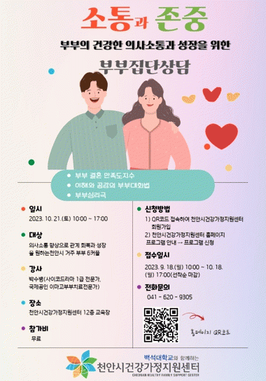 [ÃæÃ»±Ç] õ¾È½Ã°Ç°°¡Á¤Áö¿ø¼¾ÅÍ, °¡Á·»ó´ã¡¤ºÎºÎÁý´Ü »ó´ã µî ¿î¿µ |2023. 09.22