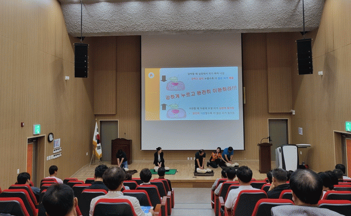 [HKSÇàÁ¤¹æ¼Û]õ¾È¼ºÏ¼Ò¹æ¼°¡ Áö³ 12ÀÏ ¿ÀÀü õ¾È½Ã ¼ºÁ¤µ¿ ¼ÒÀç õ¾ÈÃ౸¼¾ÅÍ¿¡¼ ¸ñ¿åÀå¾÷ ¿µ¾÷ÁÖ 250¿© ¸íÀ» ´ë»óÀ¸·Î ¼Ò¹æ ¾ÈÀü ÀÇ½Ä ÇÔ¾çÀ» À§ÇÑ ¾ÈÀü±³À°À» ÁøÇàÇß´Ù. ¸ñ¿åÅÁÀº ÈÀç ¹ß»ý ½Ã ½Å¼ÓÇÑ ´ëÇǰ¡ ¿ä±¸µÇ´Â Àå¼Ò·Î ¹Ð¡¦