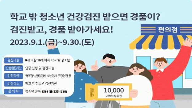 [ÃæÃ»±Ç] ¿¹»ê±ºÇб³¹Ûû¼Ò³âÁö¿ø¼¾ÅÍ, Çб³ ¹Û û¼Ò³â ´ë»ó °Ç°°ËÁø ¼ö°Ë À̺¥Æ® °³ÃÖ |2023. 09.12