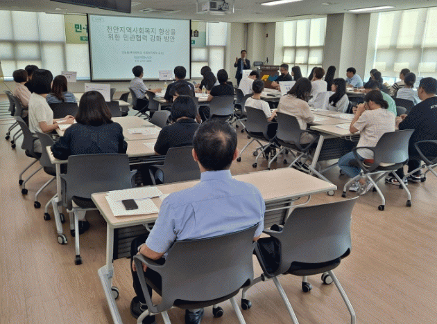 [HKSÇàÁ¤¹æ¼Û] õ¾È½ÃÁö¿ª»çȸº¸ÀåÇùÀÇü Áö¿ªº¹ÁöºÐ°ú´Â 11ÀÏ Ãµ¾È½ÃÁ¾ÇÕ»çȸº¹Áö°ü¿¡¼ Áö¿ª ³» »çȸº¹Áö»ç¾÷ ½Ç¹«ÀÚ 80¿© ¸íÀÌ Âü¼®ÇÑ °¡¿îµ¥ ¡®¹Î°üÇù·Âü°è ±¸Ãà °È¸¦ À§ÇÑ ¿öÅ©¼ó¡¯À» °³ÃÖÇß´Ù.