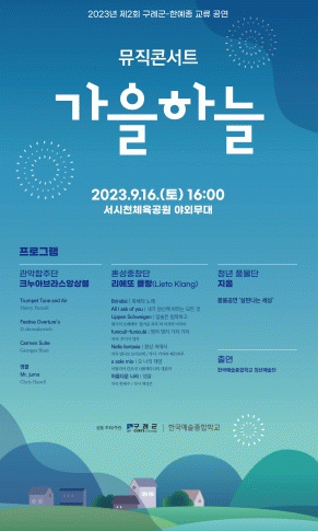 [HKSÇàÁ¤¹æ¼Û]±¸·Ê±ºÀº '2023³â Á¦2ȸ ±¸·Ê±º-ÇÑ¿¹Á¾ ±³·ù °ø¿¬ - ¹ÂÁ÷ÄܼƮ(music concert) '°¡À»ÇÏ´Ã''À» ¿À´Â 9¿ù 16ÀÏ ¿ÀÈÄ 4½Ã ¼½ÃõüÀ°°ø¿ø ¾ß¿Ü¹«´ë¿¡¼ °³ÃÖÇÑ´Ù. À̹ø °ø¿¬Àº ¹®È¼Ò¿ÜÁö¿ªÀÇ Ãë¾àÇÑ ¹®È±â¹Ý ±Øº¹ ¹× Áö¿ª ¡¦