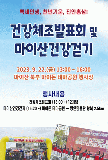 [È£³²±Ç] Áø¾È±º, 2023 È«»ïÃàÁ¦¿Í ÇÔ²²ÇÏ´Â °Ç°Ã¼Á¶¹ßǥȸ ¹× ¸¶ÀÌ»ê°Ç°°È±â Çà»ç °³ÃÖ |2023. 09.08