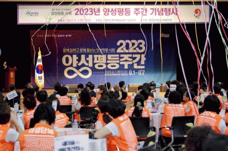 [HKSÇàÁ¤¹æ¼Û]ÇÕõ±º¿©¼º´ÜüÇùÀÇȸ´Â ¾ç¼ºÆòµîÁÖ°£(¸Å³â 9.1.~9.7.)À» ¸ÂÀÌÇØ 7ÀÏ ¹®È¿¹¼úȸ°ü ´ë°ø¿¬Àå¿¡¼ ¿©¼º´Üü ȸ¿ø, À¯°øÀÚ µî 200¿©¸íÀÌ Âü¼®ÇÑ °¡¿îµ¥ ¡®2023³â ¾ç¼ºÆòµîÁÖ°£ ±â³äÇà»ç¡¯¸¦ °³ÃÖÇß´Ù.