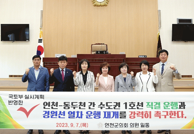 [HKSÇàÁ¤¹æ¼Û]¿¬Ãµ±ºÀÇȸ´Â 7ÀÏ Á¦279ȸ ÀÓ½Ãȸ Á¦2Â÷ º»È¸ÀÇ¿¡¼ ¿¬Ãµ±º ÀÇ¿ø Àü¿ø(7¸í)ÀÌ °øµ¿¹ßÀÇÇÑ ¡®¿¬Ãµ~µ¿µÎõ °£ ¼öµµ±Ç 1È£¼± Á÷°á ¿îÇà°ú °æ¿ø¼± ¿Â÷ ¿îÇà Àç°³ Ã˱¸ °áÀǾȡ¯À» ¸¸ÀåÀÏÄ¡·Î äÅÃÇß´Ù.