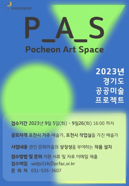 [¼öµµ±Ç] Æ÷õ¹®È°ü±¤Àç´Ü, 2023³â °æ±âµµ °ø°ø¹Ì¼ú ÇÁ·ÎÁ§Æ® »ç¾÷ (P_A_S Pocheon Art Space) ÀÛ°¡ÆÀ °ø¸ð |2023. 09.06