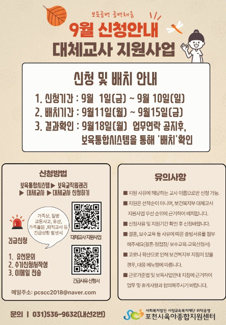 [¼öµµ±Ç] Æ÷õ½ÃÀ°¾ÆÁ¾ÇÕÁö¿ø¼¾ÅÍ, ¾î¸°ÀÌÁý ´ëü±³»ç Áö¿ø»ç¾÷ ÁøÇà |2023. 09.05