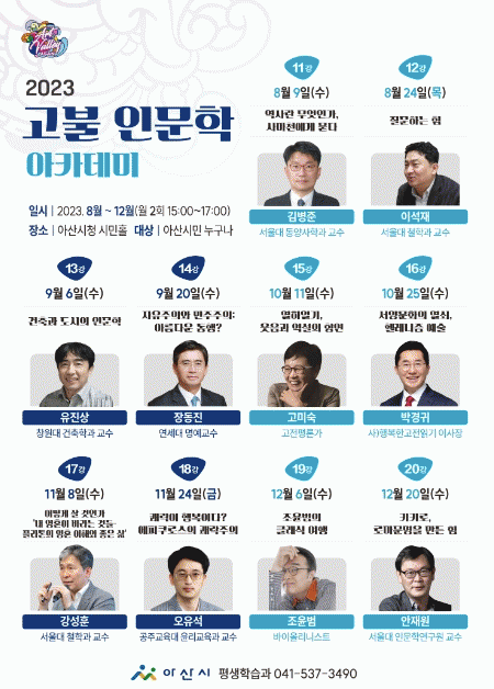 [ÃæÃ»±Ç] ¾Æ»ê½Ã, °íºÒ Àι®ÇÐ ¾ÆÄ«µ¥¹Ì ¿¼¼ ¹øÂ° À̾߱⡦'°ÇÃà°ú µµ½ÃÀÇ Àι®ÇÐ' Ư° |2023. 09.04