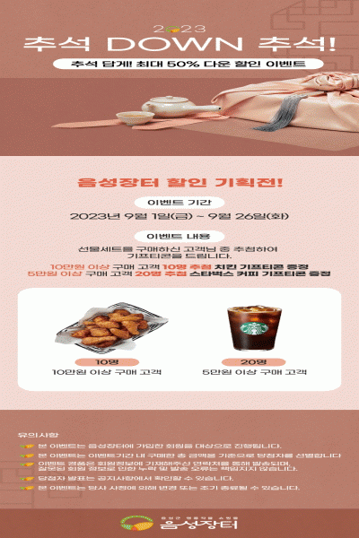 Ãß¼®¸ÂÀÌ ±âȹÀü¿¡¼´Â ½Ò, Àλï, °úÀÏ, Ãà»ê¹°, °¡°ø½Äǰ µî 39°³ ǰ¸ñÀ» ÃÖ´ë 50¡¦ |