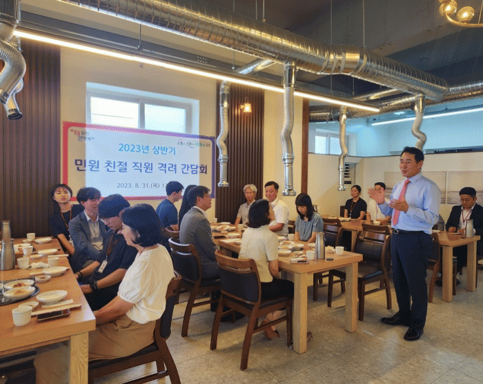 ¡®Æ÷õ½ÃÀå°ú ÇÔ²²ÇÏ´Â ¹Î¿ø Ä£Àý Á÷¿ø °Ý·Á °£´ãȸ¡¯´Â ¹Î¿ø ÃÖÀϼ±¿¡¼ ¼ö°íÇϴ ģÀý Á÷¿øÀÇ ³ë°í¸¦ °Ý·ÁÇϱâ À§ÇØ ¸¶·ÃµÆÀ¸¸ç, ¹é¿µ¡¦ |