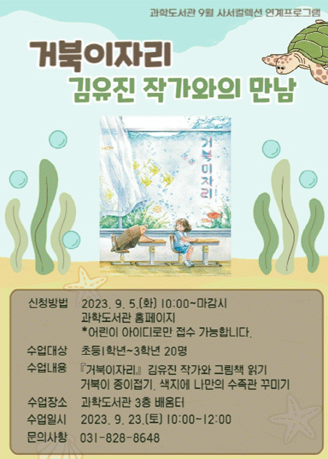 [HKSÇàÁ¤¹æ¼Û]ÀÇÁ¤ºÎ°úÇеµ¼°üÀº 9¿ù ¾î¸°ÀÌºÐ¾ß »ç¼Ä÷º¼Ç ¡®¹¹°¡ µÇµç ±¦Âú¾Æ¡¯¿Í ¿¬°èÇØ 9¿ù 23ÀÏ ÃʵîÇлý 1~3Çгâ 20¸íÀ» ´ë»óÀ¸·Î '°ÅºÏÀÌÀÚ¸®' ±èÀ¯Áø ÀÛ°¡¿ÍÀÇ ¸¸³²À» ÁøÇàÇÑ´Ù.