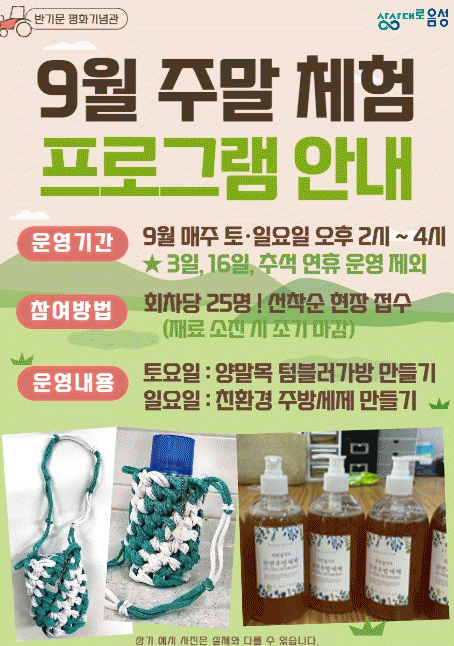 [ÃæÃ»±Ç] À½¼º±º ¹Ý±â¹® Æòȱâ³ä°ü, ÁÖ¸» üÇè ÇÁ·Î±×·¥ ¿î¿µ |2023. 09.01