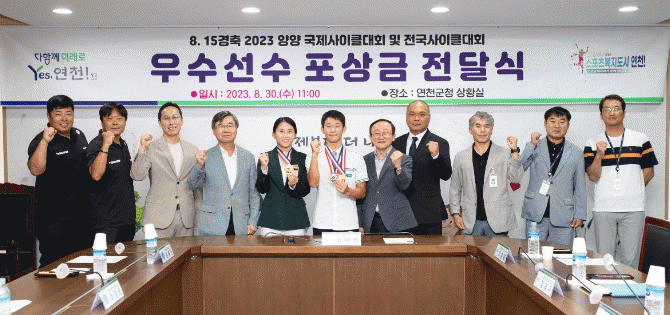 [HKSÇàÁ¤¹æ¼Û]±è´öÇö ¿¬Ãµ±º¼ö°¡ 30ÀÏ 8¡¤15 °æÃà 2023 ¾ç¾ç ±¹Á¦»çÀÌŬ´ëȸ ¹× Àü±¹»çÀÌŬ´ëȸ¿¡¼ ÀÔ»óÇÑ ÀÌÈ¿Áø ÄÚÄ¡ °â ¼±¼ö(¿¬Ãµ±ºÃ»)¿Í Àü¿µ¼ö(¿¬Ãµ°í) ¼±¼ö¸¦ °Ý·ÁÇÏ°í Æ÷»ó±ÝÀ» Àü´ÞÇß´Ù.