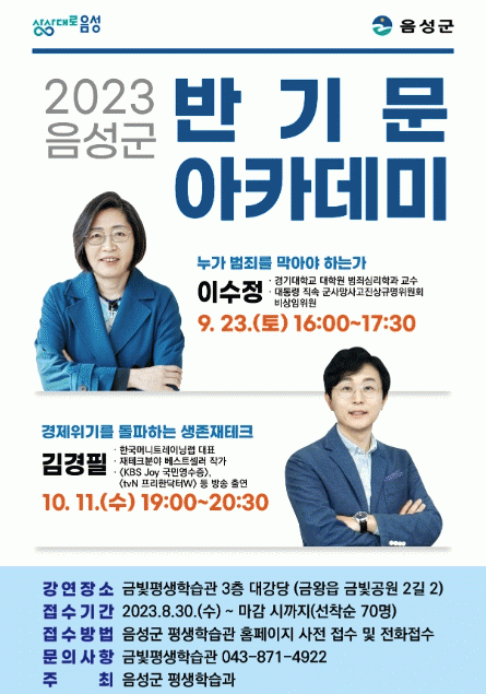 [ÃæÃ»±Ç] 2023 À½¼º±º ¹Ý±â¹® ¾ÆÄ«µ¥¹Ì ¸í»ç Ư° °³ÃÖ |2023. 08.31
