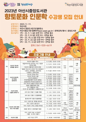 [ÃæÃ»±Ç] ¾Æ»ê½Ã Áß¾Óµµ¼°ü ¡®ÇâÅä ¹®È Àι®ÇÐÇÁ·Î±×·¥¡¯ ¿î¿µ |2023. 08.30