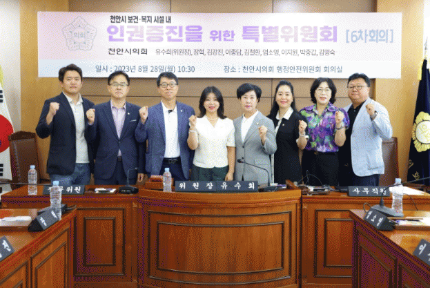 [HKSÇàÁ¤¹æ¼Û]õ¾È½ÃÀÇȸ¡®Ãµ¾È½Ã º¸°Ç¡¤º¹Áö½Ã¼³ ³» ÀαÇÁõÁøÀ» À§ÇÑ Æ¯º°À§¿øÈ¸¡¯(À§¿øÀå À¯¼öÈñ)°¡ 8¿ù 28ÀÏ Á¦6Â÷ ȸÀǸ¦ °³ÃÖÇß´Ù.
