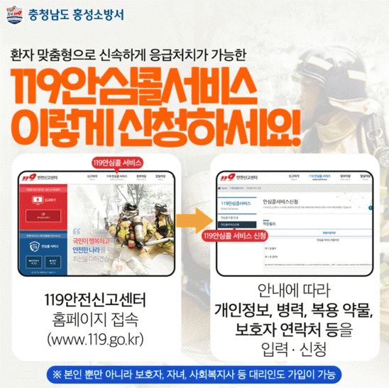 ¡®119¾È½ÉÄÝ ¼ºñ½º¡¯´Â ÀÀ±Þ»óȲ ¹ß»ý ½Ã 119·Î ½Å°íÇÏ¸é »çÀü¿¡ µî·ÏµÈ ȯÀÚÀÇ Áúº´ Ư¼º¡¦ |