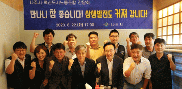 [HKSÇàÁ¤¹æ¼Û]À±º´Å ³ªÁÖ½ÃÀåÀÌ ±¤ÁÖ¡¤Àü³² °øµ¿ Çõ½Åµµ½Ã³ëµ¿Á¶ÇÕ°ú »ì±â ÁÁÀº Çõ½Åµµ½Ã¸¦ À§ÇÑ µ¿¹Ý Çù·ÂÀ» ´ÙÁüÇß´Ù.