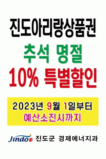 [È£³²±Ç] Áøµµ±º, Ãß¼®¸ÂÀÌ Áøµµ¾Æ¸®¶û»óǰ±Ç 10% ÇÒÀÎ ÆÇ¸Å ½Ç½Ã