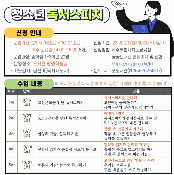 [HKSÇàÁ¤¹æ¼Û]Á¦ÁÖµµ±³À°Ã» ¼±ÍÆ÷µµ¼°üÀº û¼Ò³âµéÀÇ ³í¸®·Â°ú »ç°í·ÂÀ» Ű¿ì´Â±âȸ¸¦ ¸¶·ÃÇϰíÀÚ¡®2023³â û¼Ò³â µ¶¼½ºÇÇÄ¡¡¯Âü°¡ÀÚ¸¦ ¸ðÁýÇÑ´Ù. ±èÁø¾Æ(µ¶¼Áöµµ»ç) °»çÀÇ Áöµµ·Î ´Ù¾çÇÑ °íÀü¹®ÇÐÀ» Àаí, ºÐ¼®ÇÏ°í ¼·Î Åä·ÐÇϸ硦