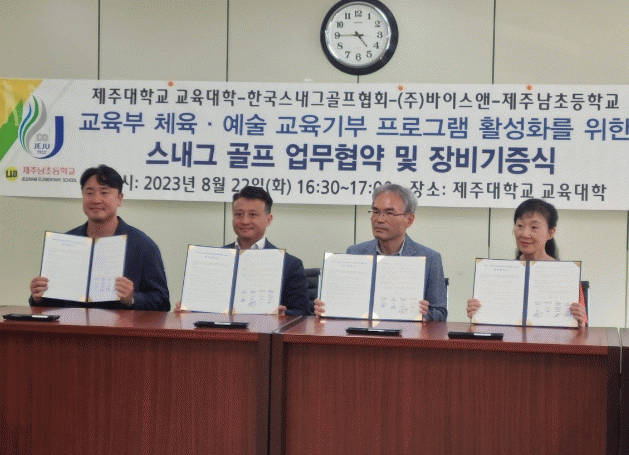 [HKSÇàÁ¤¹æ¼Û]Á¦ÁÖµµ±³À°Ã» Á¦ÁÖ³²ÃʵîÇб³´Â 22ÀÏ Á¦ÁÖ´ëÇб³ ±³À°´ëÇп¡¼ ½º³»±×°ñÇÁ ¾÷¹«Çù¾à½ÄÀ» °¡Á³´Ù. ÀÌ Çù¾à½ÄÀº Á¦ÁÖ´ëÇб³±³À°´ëÇÐ, Çѱ¹½º³»±×°ñÇÁÇùȸ, (ÁÖ)¹ÙÀ̽º¿£, Á¦ÁÖ³²ÃʵîÇб³ ´ëÇ¥°¡ ¸ð¿© ÀÌ·ç¾îÁ³´Ù. À̸¦ °è¡¦