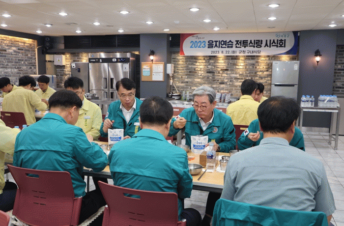 [HKSÇàÁ¤¹æ¼Û]ÀǷɱºÀº À»Áö¿¬½À ±â°£ÀÎ 22ÀÏ ±ºÃ» ±¸³»½Ä´ç¿¡¼ ¿ÀÅÂ¿Ï ±º¼ö¿Í °£ºÎ °ø¹«¿ø, À»Áö¿¬½À ÈÆ·Ã Á÷¿øµéÀ» Âü¼®ÇÑ °¡¿îµ¥ Àü½Ã »óȲÀ» °¡Á¤ÇÑ ÀüÅõ ºñ»ó½Ä·® üÇèÀ» Çß´Ù.