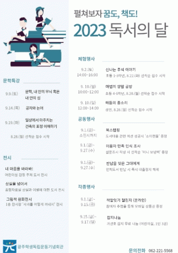 [HKSÇàÁ¤¹æ¼Û]±¤ÁÖÇлýµ¶¸³¿îµ¿±â³äȸ°üÀÌ ¡®2023 µ¶¼ÀÇ ´Þ¡¯ Çà»ç¸¦ ¿À´Â 9¿ù1ÀÏ~30ÀÏ ¿î¿µÇÑ´Ù. Çлýµ¶¸³¿îµ¿±â³äȸ°ü¿¡ µû¸£¸é ȸ°ü ÀÌ¿ëÀÚ¿Í ½Ã¹ÎµéÀ» ´ë»óÀ¸·Î ÇÏ´Â À̹ø Çà»ç´Â ¿Â¡¤¿ÀÇÁ¶óÀÎ À̺¥Æ® µ¿½Ã ÁøÇàÀ» ÅëÇØ ´õ¿í ´Ù¾çÇÑ¡¦