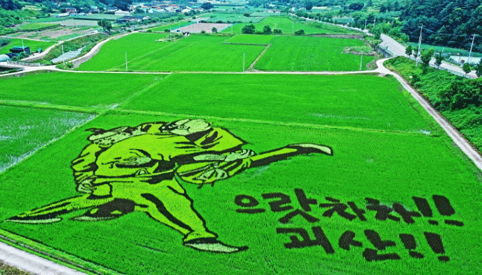 [HKSÇàÁ¤¹æ¼Û]ÃæºÏ ±«»ê±º ³ó¾÷±â¼ú¼¾ÅͰ¡ Áö³ 5¿ù ±«»ê±º ¹®±¤¸é ½Å±â¸® ¹®±¤Àú¼öÁö ÀÏ¿ø¿¡ Á¶¼ºÇÑ À¯»öº ³í±×¸²ÀÌ °íÀ¯ÀÇ »öÀ» µå·¯³»¸ç ¿õÀåÇÑ ÀÚŸ¦ »Ë³»°í ÀÖ´Ù.