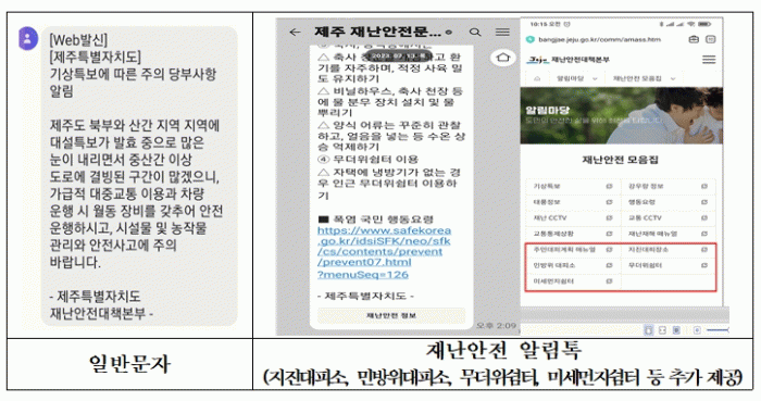 [HKSÇàÁ¤¹æ¼Û]Á¦ÁÖÆ¯º°ÀÚÄ¡µµ´Â ¿¤¸®´¢ µî ±â»ó À̺¯À¸·Î Áö¿ªº° ÁýÁßÈ£¿ì°¡ ºó¹øÇÏ°Ô ¹ß»ýÇÏ´Â µî µµ¹Î ÇÇÇØ ¿¹¹æ¿¡ Àû±Ø ´ëÀÀÇϱâ À§ÇØ Àç³¾ÈÀüÁ¤º¸¸¦ ¡®Àç³¾ÈÀü ¾Ë¸²Å塯À» ÅëÇØ ´õ¿í ½Å¼ÓÇÏ°í ´Ù¾çÇÏ°Ô Á¦°øÇÒ ¹æÄ§ÀÌ´Ù. ±âÁ¸ À硦