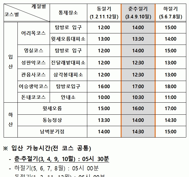 [HKSÇàÁ¤¹æ¼Û]Á¦ÁÖÆ¯º°ÀÚÄ¡µµ ÇѶó»ê±¹¸³°ø¿ø°ü¸®¼Ò´Â °¡À»Ã¶À» ¸Â¾Æ ÇѶó»ê Ž¹æ°´ÀÇ ¾ÈÀü»êÇàÀ» À§ÇØ ¿À´Â 9¿ù 1ÀϺÎÅÍ 10¿ù 31ÀϱîÁö µî»ê ½ÃÀÛ¡¤Á¾·á(ÅëÁ¦)½Ã°£À» Á¶Á¤ÇÑ´Ù. °¡À»Ã¶ ½Ã°£ Á¶Á¤¿¡ µû¶ó µî»ê ½ÃÀ۽ð£Àº ´çÃÊ ¿ÀÀü 5½Ã¡¦