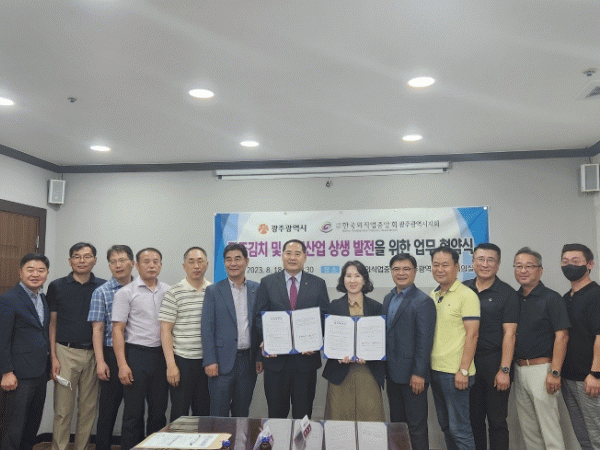 [HKSÇàÁ¤¹æ¼Û]±¤ÁÖ±¤¿ª½Ã¿Í Çѱ¹¿Ü½Ä¾÷Áß¾Óȸ ±¤ÁÖ±¤¿ª½ÃÁöȸ´Â 18ÀÏ ¡®±¤Áֽà ±èÄ¡»ê¾÷°ú ¿Ü½Ä»ê¾÷ÀÇ »ó»ýÇù·ÂÀ» À§ÇÑ ¾÷¹«Çù¾à¡¯À» ü°áÇß´Ù.