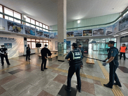 [HKSÇàÁ¤¹æ¼Û]Çѱ¹Ã¶µµ ´ëÀüÃæÃ»º»ºÎ ÃæÁÖ¿ªÀÌ 16ÀÏ ¿ÀÈÄ ÃæÁÖ¿ª ¸ÂÀ̹æ°ú ¿ª±¤Àå¿¡¼ ¿ª»ç ³» Èä±â³µ¿¹ü ÃâÇö µî Å×·¯»óȲÀ» °¡Á¤ÇÑ ¸ðÀÇÈÆ·ÃÀ» ÁøÇàÇß´Ù.
