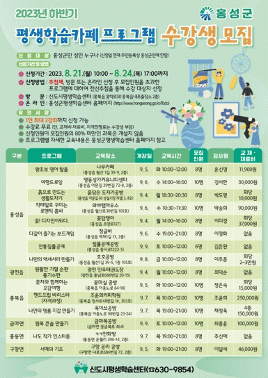 [ÃæÃ»±Ç] È«¼º±º, ÇÏ¹Ý±â Æò»ýÇнÀÄ«Æä ÇÁ·Î±×·¥ ¼ö°»ý ¸ðÁý |2023. 08.17
