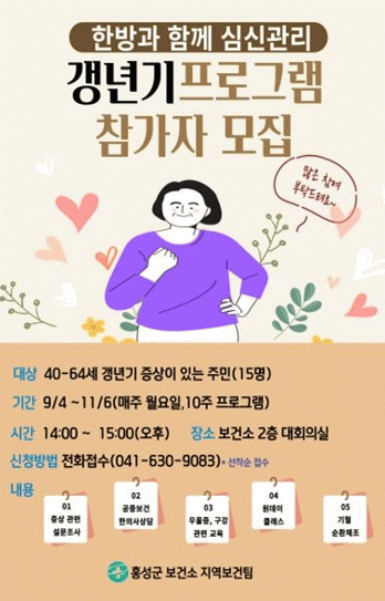 [ÃæÃ»±Ç] È«¼º±ºº¸°Ç¼Ò ¡®Çѹæ°ú ÇÔ²² ½É½Å°ü¸®¡¯ Âü°¡ÀÚ ¸ðÁý |2023. 08.17