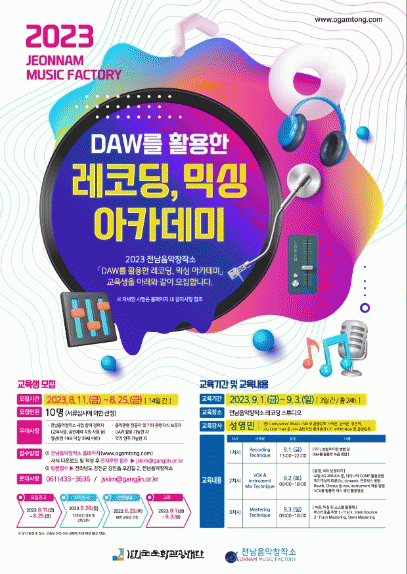 [HKSÇàÁ¤¹æ¼Û]°Áø¿¡ ÀÖ´Â Àü³²À½¾ÇâÀÛ¼Ò´Â Áö¿ªÀ½¾Ç ÀÎÀç ¾ç¼º°ú âÀÛ ¿ª·® °È¸¦ À§ÇØ ¡®2023 DAW¸¦ Ȱ¿ëÇÑ ·¹ÄÚµù ¡¤ ¹Í½Ì ¾ÆÄ«µ¥¹Ì¡¯ ±³À°»ýÀ» ¸ðÁýÇÑ´Ù°í 16ÀÏ ¹àÇû´Ù.