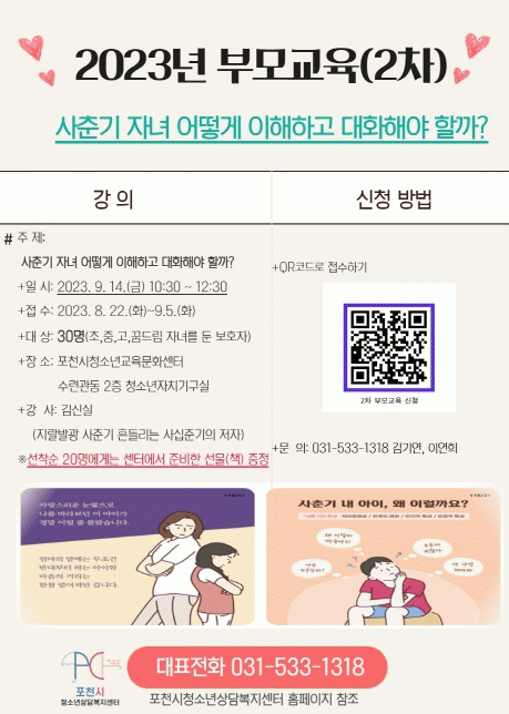 [¼öµµ±Ç] 2023³â Æ÷õ½Ãû¼Ò³â»ó´ãº¹Áö¼¾ÅÍ 2Â÷ ºÎ¸ð±³À° °³ÃÖ |2023. 08.16