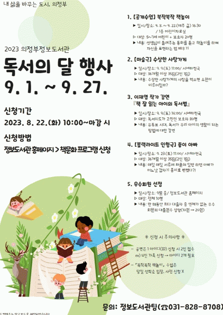 [HKSÇàÁ¤¹æ¼Û]ÀÇÁ¤ºÎÁ¤º¸µµ¼°üÀº µ¶¼ÀÇ ´ÞÀ» ¸Â¾Æ 9¿ù 1ÀϺÎÅÍ 27ÀϱîÁö ÀÛ°¡ °¿¬, °ø¿¬, Ã¥³îÀÌ ¼ö¾÷ µî µ¶¼¹®È ÇÁ·Î±×·¥À» ¿î¿µÇÑ´Ù.