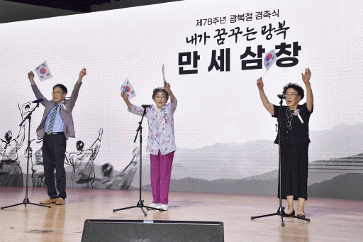 Á¦78Áֳ⠱¤º¹ÀýÀ» ¸ÂÀº 15ÀÏ ¿ÀÀü 10½Ã50ºÐ. °æÃà½ÄÀÌ ¿¸° ±¤ÁÖ±¤¿ª½Ãû ´ëȸÀÇ½Ç °¡µæ ¸¸¼¼»ïâÀÌ ¿ï·ÁÆÛÁ³´Ù. À̹ø ¸¸¼¼»ïâÀÇ ¼±µÎ¿¡´Â ÃÖ¸¸³â ¾Ö±¹Áö»ç ¼ÕÀÚ³àÀÎ ÃÖÀåÈÆ ¼±»ý, ÀÏÁ¦°Á¦µ¿¿ø ÇÇÇØÀÚ¡¦ |