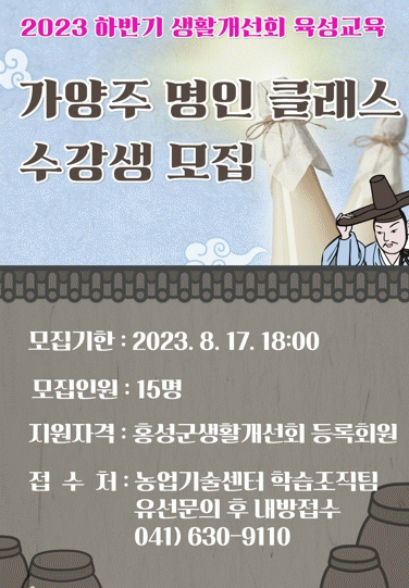[ÃæÃ»±Ç] È«¼º±º³ó¾÷±â¼ú¼¾ÅÍ, ÇϹݱ⠻ýȰ°³¼±È¸ À°¼º±³À° ¼ö°»ý ¸ðÁý |2023. 08.15