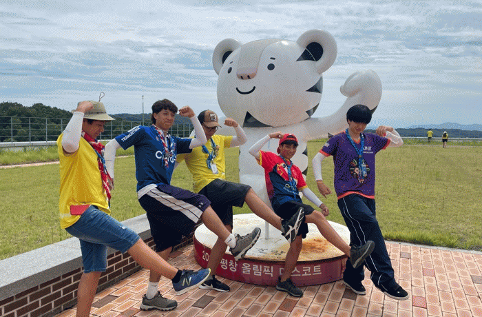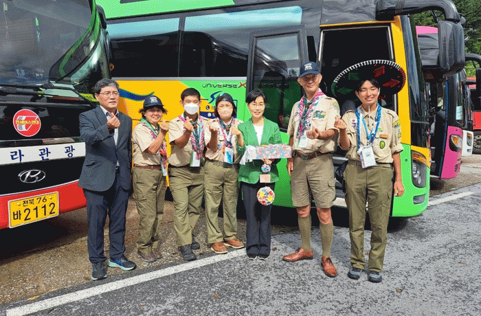 [HKSÇàÁ¤¹æ¼Û]ÃæºÏ ´Ü¾ç±º ±¸Àλ翡 ¸Ó¹°·¶´ø ÀϺ» ½ºÄ«¿ìÆ® ´ë¿øµéÀÌ ¶°³ª±â Àü ³²±ä ¸»·Î Áö¿ª»çȸ¸¦ ÈÆÈÆÇÏ°Ô ¸¸µé°í ÀÖ´Ù.