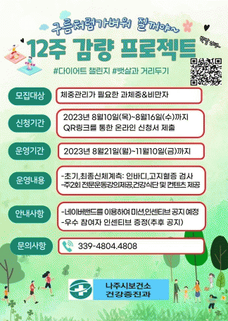 [È£³²±Ç] ¡®ºñ¸¸, °í¹Î ¸»°í ½Åû¡¯ ³ªÁֽà º¸°Ç¼Ò, 12ÁÖ Ã¼Áß°¨·® ÇÁ·ÎÁ§Æ® Âü°¡ÀÚ ¸ðÁý |2023. 08.11