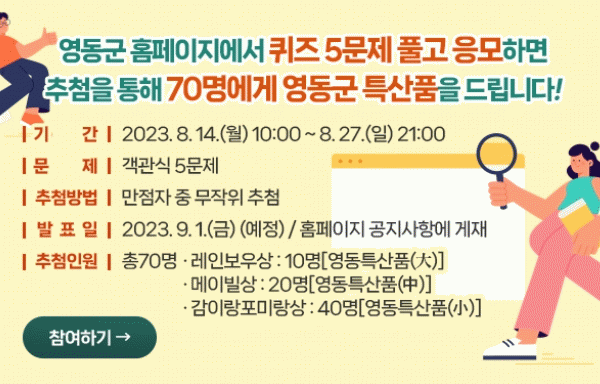 [ÃæÃ»±Ç] ¿µµ¿±º Á¦55ȸ ÀÎÅͳÝÁ¤º¸°Ë»ö´ëȸ °³ÃÖ ¡®ÄûÁî Ç®°í ǪÁüÇÑ ¼±¹° ¹ÞÀÚ¡¯ |2023. 08.11